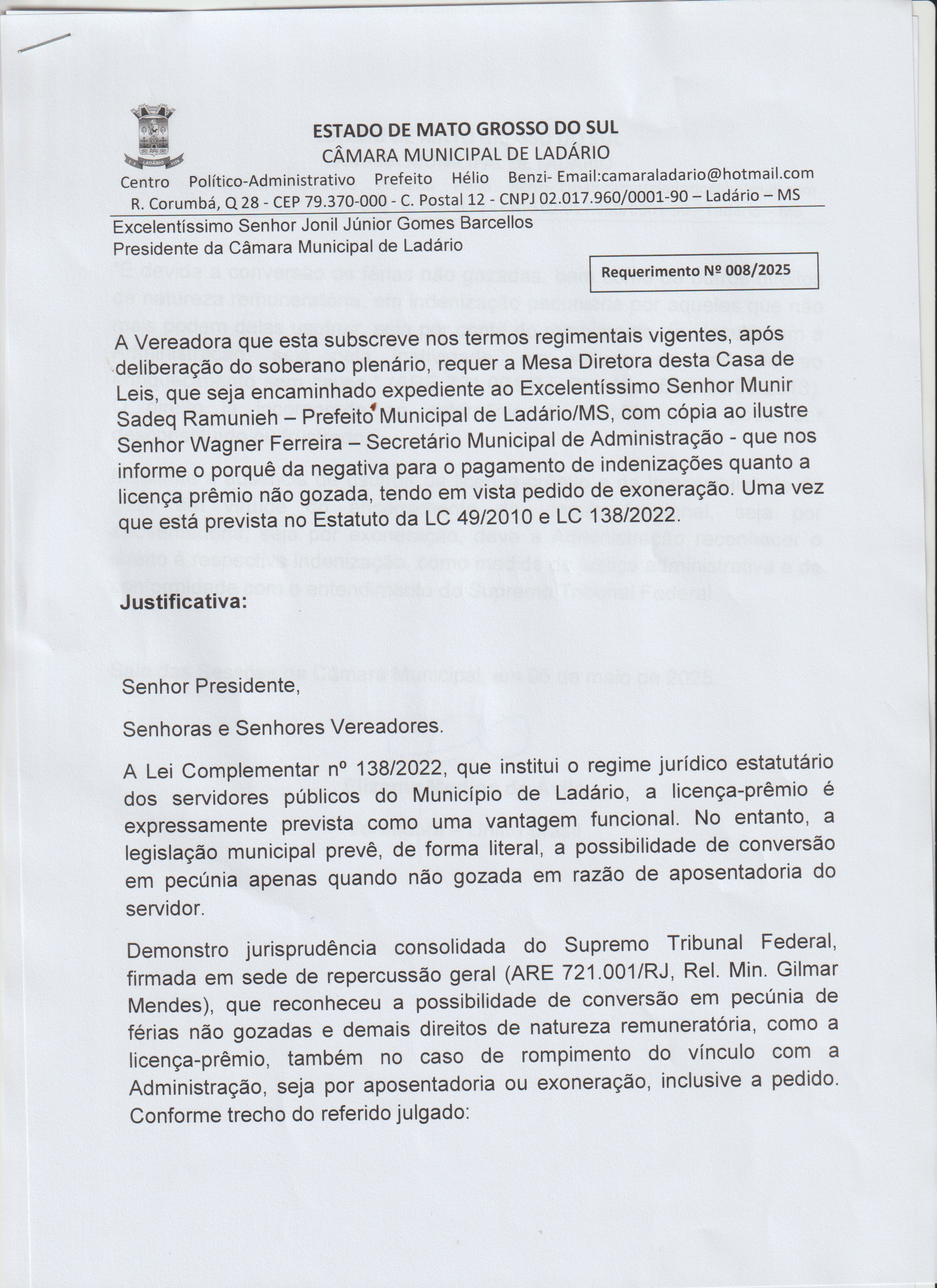 REQUERIMENTO N° 008/2025 |